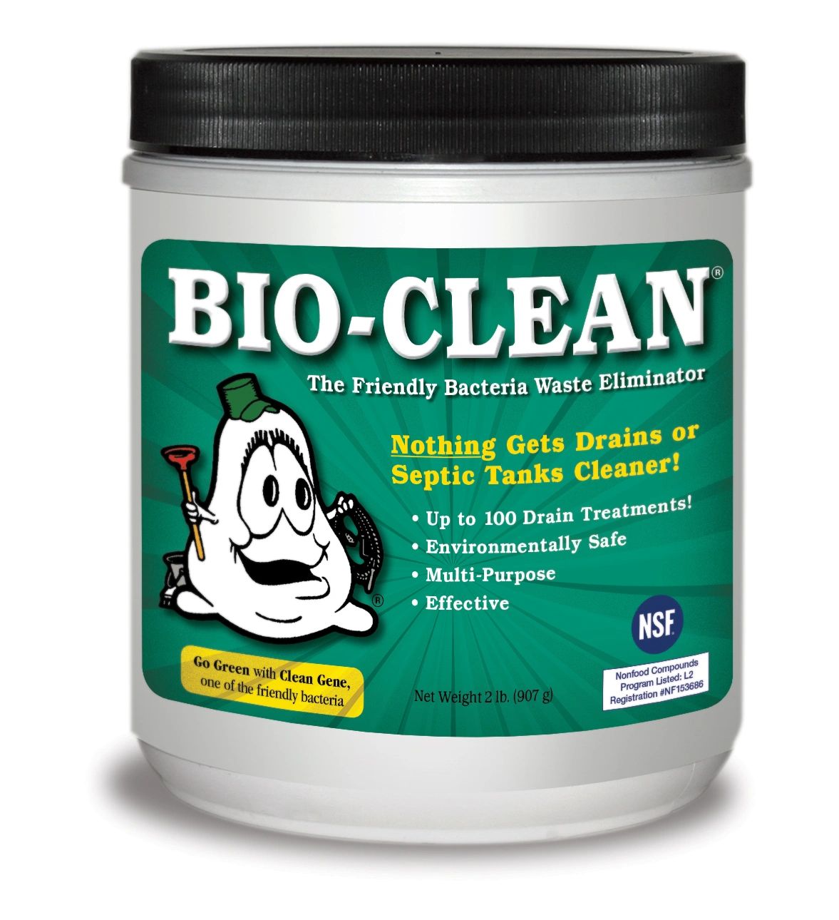 Each 2lb container contains 100 drain treatments enough to treat a 1,000 gallon septic tank. Bio-Clean Eliminates the need for dangerous store bought chemicals, deodorant blocks (urinals), and costly compensation to employees that have been injured by using dangerous chemicals.
